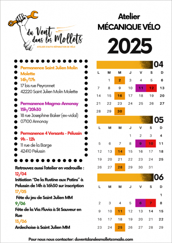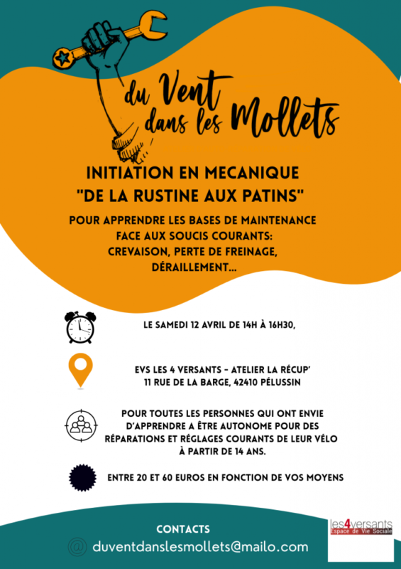 L’Association Du vent dans les mollets propose des ateliers d’auto réparation de vélo à St Julien MM et en itinérance depuis quelques mois !
